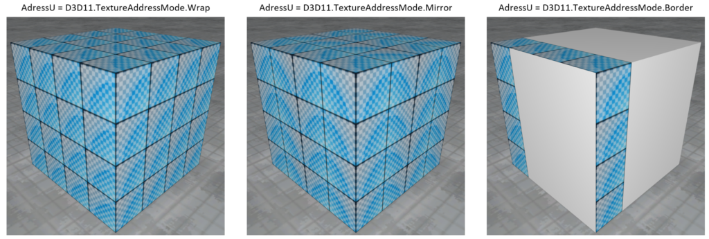 - Logik zur mehrfachen Darstellung einer Textur auf einer Fläche (Siehe D3D11_TEXTURE_ADDRESS_MODE [3])